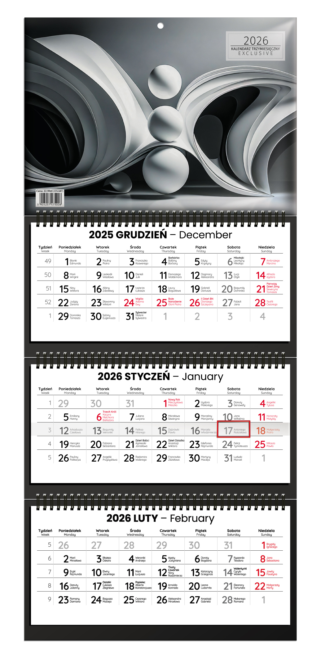 Kalendarz trzymiesięczny exclusive 2026